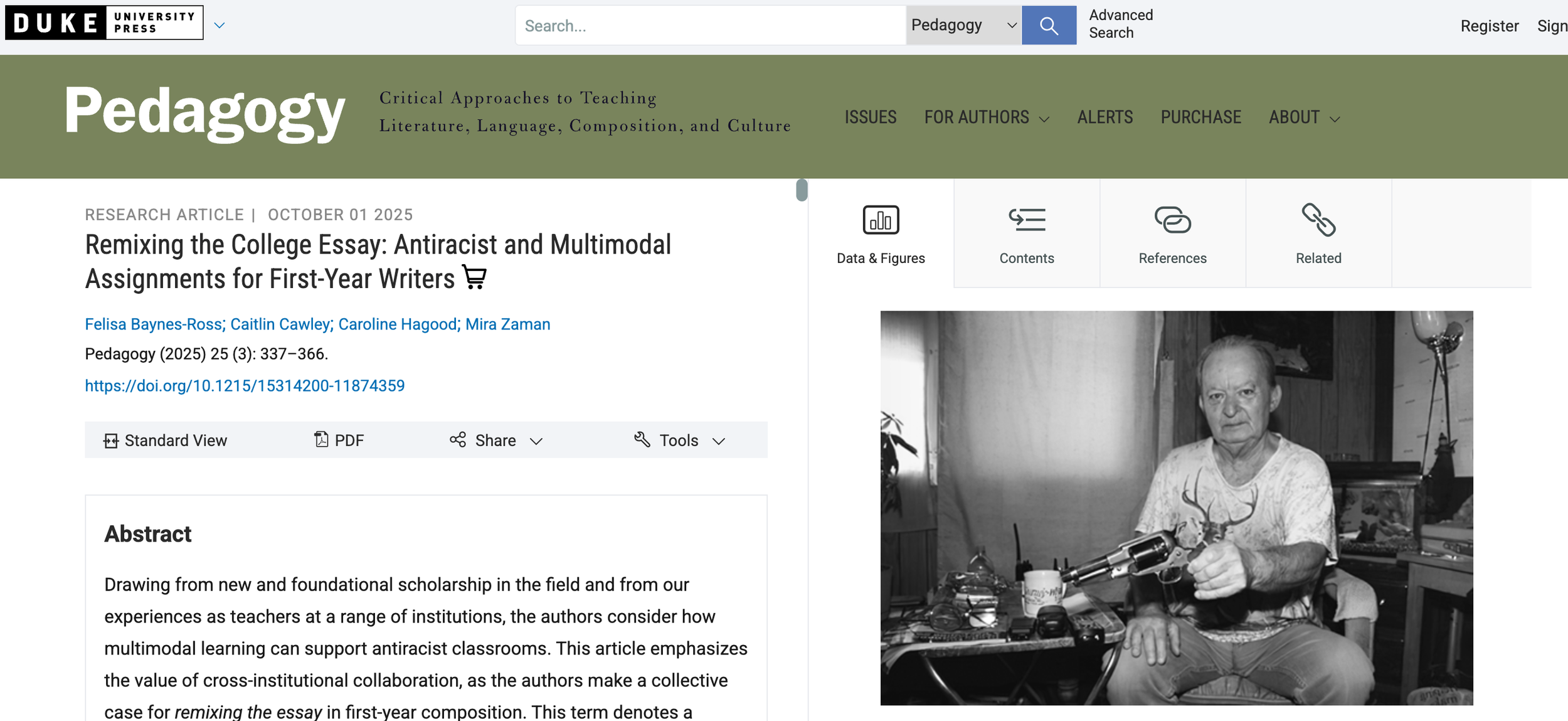 I teach courses in American literature, first-year writing, speculative fiction and creative writing. Recent courses at St. Francis College include Literature Across Cultures, Intro to Digital Publishing, The Lyric Essay, Telling Our Stories: Theory and Practice of Autobiographical Writing, and Memoir Meets Speculative Fiction. Through recent work with Digital Humanities Across the Curriculum supported by the National Endowment for the Humanities, and the Michael V. Drake Digital Media and Composition Institute, I strive to bring new developments in the digital humanities and digital publishing into the classroom.